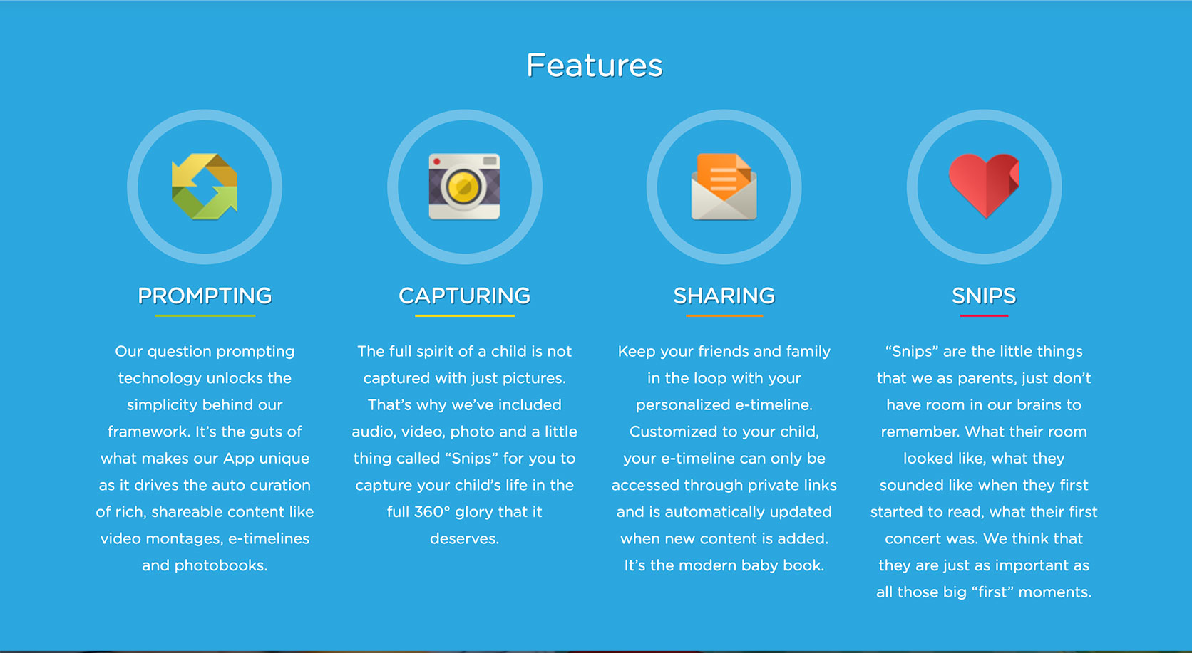 Capture, share, catalogue and preserve the big and small snip-its of your child’s adventures. Locket's unique technology prompts you to record those moments, and then it automatically creates rich, shareable content like video montages, e-timelines and photobooks.
